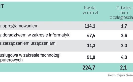i obostrzeń spowodowanych Covid-19 generalnie firmy IT właściwie niemal nie zwiększyły zaległości wobec swoich dostawców i banków, jak wynika z danych Rejestru Dłużników BIG InfoMonitor oraz BIK. Choć należy zaznaczyć, że hossa na usługi czy towary danego sektora nie zawsze gwarantuje jego dostawcom czy powiązanym instytucjom finansowym solidność płatniczą kontrahentów, którym się dobrze wiedzie.