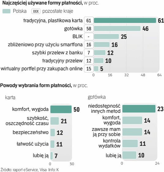 Polacy są wśród liderów płatności elektronicznych w Europie i na świecie. – Jednym z najlepszych dowodów na to są badania, które od kilku lat prowadzimy, by poznawać zwyczaje zakupowe konsumentów. Bardzo dobitnie potwierdzają to zwłaszcza wnioski z ostatniej edycji tego badania – mówi Joanna Seklecka, prezes eService. Wskazuje, że karta i gotówka to metody płatności najczęściej wymieniane spontanicznie przez respondentów ze wszystkich badanych krajów. Na pierwszym miejscu uplasowała się płatność tradycyjną kartą płatniczą, wyprzedzając gotówkę i cyfrowe portfele. W niektórych krajach pozycja gotówki była jeszcze niższa, np. w Polsce. 89 proc. respondentów ze wszystkich krajów objętych badaniem korzysta z tradycyjnej karty. Płatności nią są najpopularniejsze w Czechach (93 proc.), Portugalii (też 93 proc.), Irlandii (92 proc.) i Polsce (też 92 proc.). – Zaawansowanie płatnicze Polaków to w dużym stopniu zasługa naszej branżowej inicjatywy, jaką jest program Polska Bezgotówkowa. W ciągu pięciu lat jego funkcjonowania bardzo dużo zmieniło się na naszym rynku, zwłaszcza w zakresie ułatwienia przedsiębiorcom rozpoczęcia przyjmowania płatności kartą – mówi Joanna Seklecka.