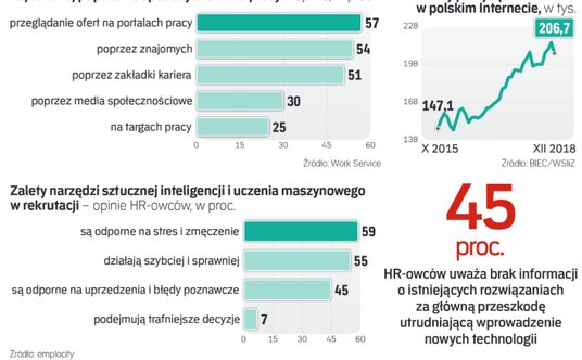 Jeszcze przed kilkoma laty wśród ofert pracy publikowanych w internecie dominowały te skierowane do specjalistów i menedżerów, którzy byli najlepiej oswojeni z nowymi technologiami i mieli na co dzień dostęp do komputera. Dzisiaj, w czasach powszechnego mobilnego dostępu do sieci, na czołowym portalu rekrutacyjnym Pracuj.pl, który stawia głównie na specjalistów, w minionym roku już w 12 proc. ogłoszeń szukano fachowców i innych pracowników fizycznych. Migracja tych ogłoszeń do internetu to obok boomu na rynku pracy jeden z powodów rosnącej w dwucyfrowym tempie liczby ofert zatrudnienia w sieci – która w ubiegłym roku przekroczyła 2,4 miliona. Kolejny etap to ich dostępność przez urządzenia i aplikacje mobilne.