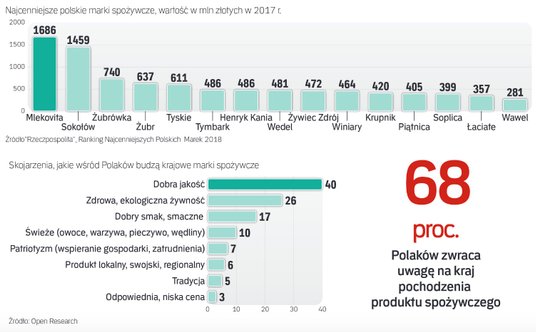 Na podobne nastroje krajowych konsumentów wskazało w minionym roku badanie firmy Open Research. Sześciu na dziesięciu badanych stwierdziło, że polskie pochodzenie artykułów spożywczych zwiększa chęć zakupu. Takie podejście przekłada się zarówno na działania marketingowe firm (nawet międzynarodowe koncerny spożywcze podkreślają w reklamach polskość produktów wytwarzanych w polskich zakładach), jak również na wartość oraz dużą liczbę krajowych marek żywnościowych.