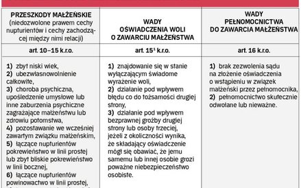 Jedną z głównych instytucji prawa rodzinnego jest małżeństwo. Zgodnie z art. 1 kodeksu rodzinnego i opiekuńczego zostaje zawarte po łącznym spełnieniu przesłanek:
