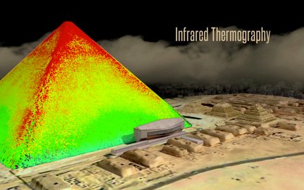 Wokół piramid przesuwana jest kamera na podczerwień wychwytująca energię, jaką emitują starożytne obiekty. Na podstawie zapisu kamery powstaje barwny obraz. Plamy czerwone odpowiadają miejscom cieplejszym, niebieskie chłodniejszym, o mniejszej gęstości, które mogą się okazać miejscami pustymi, komorami bądź korytarzami. W ramach programu Scan Pyramids badane są trzy wielkie piramidy w Gizie pod Kairem – Chefrena, Cheopsa i Mykerinosa, oraz mniejsza piramida w Dahszur na południe od stolicy Egiptu, wzniesione dla faraona Snofru, ojca Cheopsa. Wszystkie te obiekty powstały około 4600–4500 lat temu.