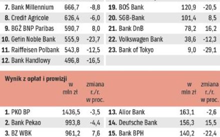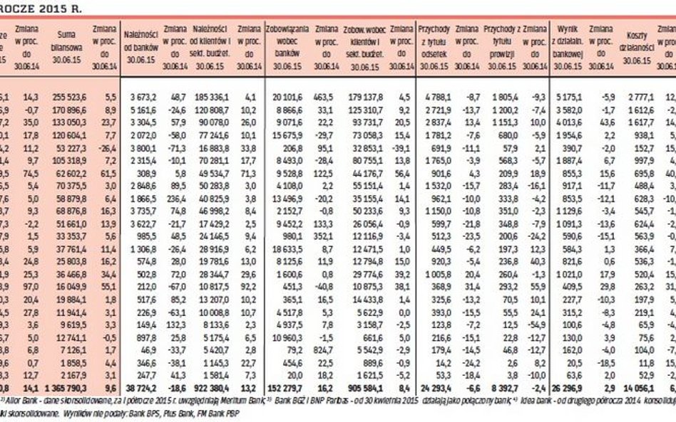 W pierwszej połowie tego roku 23 banki, które podały nam dane, zarobiły łącznie ponad 7,5 mld zł. Z naszego zestawienia widać, że aż 13 z nich poprawiło swój wynik w ujęciu rocznym, a w przypadku dziesięciu był on gorszy. Jednak analizując ich rezultaty, trzeba wziąć pod uwagę, że dla części są one nieporównywalne ze względu na przejęcia lub konsolidację nowych spółek. Dodatkowo w przypadku kilku w pierwszej części roku miały miejsce zdarzenia jednorazowe mocno poprawiające zysk netto, zwłaszcza w pierwszym kwartale.