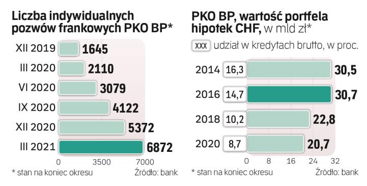 PKO BP jest jedynym dużym bankiem zaangażowanym we franki, który ma zgodę akcjonariuszy na start powszechnego programu ugód. Zdecydowali o tym 23 kwietnia, ale później – 29 kwietnia, 7 maja i 11 maja – pojawiły się odpowiednio orzeczenia TSUE, siedmiu sędziów Sądu Najwyższego i decyzja pełnego składu Izby Cywilnej SN.