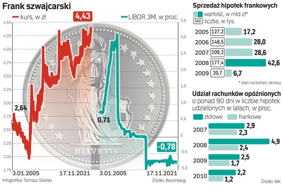 Warto też zwrócić uwagę na inny aspekt dotyczący złotego, czyli stopy procentowe. Te już poszły w górę i najpewniej jeszcze urosną, co może zmniejszać skłonność frankowiczów do wyboru ugody jako sposobu rozwiązania problemu, bo konwersja na kredyt złotowy oznaczać będzie wzrost raty wobec frankowego kredytu (LIBOR 3M jest ujemny na poziomie 0,78 proc., WIBOR 3M urósł już do 1,64 proc.). PKO BP przyznał ostatnio, że po podwyżce stóp skłonność frankowiczów do zawierania porozumień może być niższa, niż wynikało to z przeprowadzonej wcześniej ankiety. Wyższe stopy mogą zmniejszyć liczbę zawieranych ugód i spowolnić ten proces. Część klientów może się wstrzymać z decyzją, aby zobaczyć, na jakim poziomie ustabilizują się stopy procentowe w złotym.
