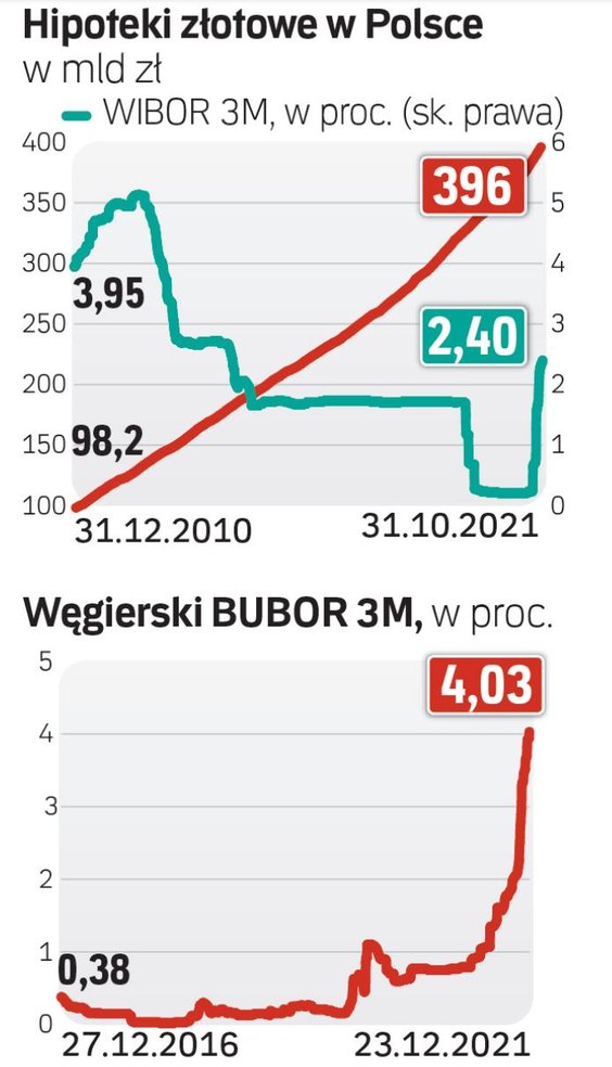 Bardziej zastanawiające dla polskich banków może być to, czy klienci spłacający hipoteki złotowe – odczuwający w wyższych ratach skutki rosnącego WIBOR – zaczną zachowywać się podobnie jak frankowicze po umocnieniu franka i będą kwestionować umowy. To kolejny argument za tym, aby w szerszym stopniu udzielać hipotek o stałym oprocentowaniu, bo w przypadku zmiennego są ryzyka nie tylko związane z ochroną konsumenta, ale jak widać po Węgrzech także polityczne.