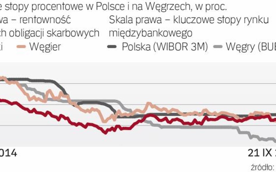 Ostatniej obniżki swojej głównej stopy – oprocentowania wspomnianych trzymiesięcznych lokat banków komercyjnych w banku centralnym – MNB dokonał w maju. Obniżył ją wtedy do 0,9 proc. Niżej sprowadzać jej już nie chce. Jednocześnie jednak chciałby obniżyć koszt kredytu w węgierskiej gospodarce, aby przywrócić dynamikę cen konsumpcyjnych (w sierpniu spadły o 0,1 proc. rok do roku) w pobliże swojego celu inflacyjnego (3 proc.).