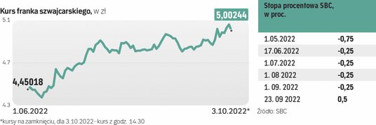 Sytuację frankowiczów pogarszają też rosnące stopy procentowe Szwajcarskiego Banku Centralnego (SBC). Obecnie główna stopa wynosi już 0,5 proc., podczas gdy jeszcze w czerwcu było to minus 0,75 proc.