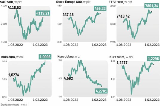 Słabł za to dolar. Za 1 dol. płacono w ciągu czwartkowej sesji nawet poniżej 4,27 zł. Kurs zszedł więc do poziomu z czerwca. 1 euro kosztowało już natomiast powyżej 1,10 dol., co oznaczało powrót kursu na poziom z końcówki marca zeszłego roku. Dobre nastroje na rynkach były m.in. skutkiem tego, że amerykański Fed (który w środę wieczorem podniósł główną stopę procentową o 25 pkt baz., do przedziału 4,5–4,75 proc.) nie zgotował inwestorom żadnej „jastrzębiej” niespodzianki.