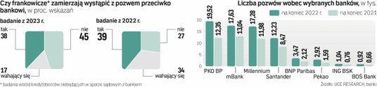 Z kolei grupa frankowiczów, którzy nie chcą wchodzić na drogę sądową, znacząco się zwiększyła – z 27,2 proc. rok wcześniej do aż 45,1 proc. obecnie. Ten wzrost nastąpił głównie kosztem osób wahających się, gdzie nastąpił spadek z 33,7 proc. do 17 proc.