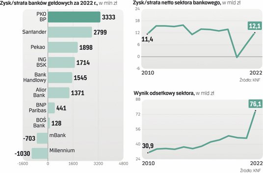 Sprawdziliśmy, na jaki udział w zyskach mogą liczyć akcjonariusze innych kredytodawców. Okazuje się, że sytuacja jest dosyć skomplikowana. Według naszych szacunków wśród ośmiu banków, które wypracowały dodatni wynik netto za 2022 rok, tylko dwa z pewnością wypłacą dywidendę, trzy zachowają cały zysk na wzmocnienie sytuacji kapitałowej, a w przypadku kolejnych trzech należy postawić wielki znak zapytania. Dla porządku trzeba dodać, że dwa podmioty wykazały stratę (mBank i Bank Millennium), więc nie mają się czym podzielić.