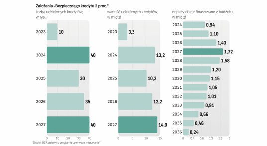 Zdaniem Turka,tylko w tym roku udzielonych może zostać 40–60 tys. kredytów, a do końca 2027 r., gdy skończyć się ma program „Pierwsze mieszkanie”, mogłoby ich być nawet 200–300 tys. – o ile oczywiście pieniędzy nie zabraknie. Jest to kluczowe zastrzeżenie, bo zgodnie z projektem ustawy budżet przygotowany jest jednak na 155 tys. kredytów w tym okresie.