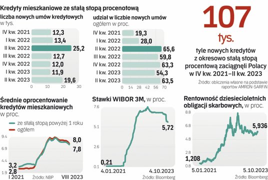 W zupełnie innej sytuacji są ci, którzy zdecydowali się na kredyt mieszkaniowy z okresowo (zwykle na pięć lat) stałą stopą procentową. W tym przypadku, niezależnie od ruchów WIBOR, miesięczna rata nie drgnie ani o złotówkę. Dla tych osób, które zaciągnęły kredyt na tzw. górce, obniżki stóp procentowych to raczej źródło rosnącej frustracji i poczucia, że „przepłacają” za swój kredyt. Tym bardziej że zgodnie z rekomendacją Komisji Nadzoru Finansowego takich kredytów nie można zamienić na te ze zmiennym oprocentowaniem w okresie, gdy obowiązuje stała stopa.