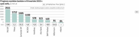 Sporą zagadką jest PKO BP. Eksperci szacują zysk lidera rynku na zawrotną kwotę nieco ponad 2,5 mld zł. Ale rozrzut prognoz jest tu dosyć duży: nie wiadomo, jak duże rezerwy frankowe poczynił PKO BP w III kw. Jeśli były one niewielkie, zysk może sięgnąć nawet 2,67 mld zł, jeśli jednak wyniosły ok. 500 mln zł, może to być 2,16 mld zł.