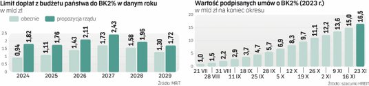 Przypomnijmy, że BK2% jest dostępny od lipca 2023 roku, jako element publicznego wsparcia młodych Polaków w zakupie pierwszego mieszkania w życiu. A że jest to bardzo atrakcyjna oferta, popyt okazał się znacząco większy niż się spodziewano. Rząd szacował, że w 2023 r. zostanie udzielonych ok. 10 tys. kredytów, o wartości ok. 3,2 mld zł, co kosztowałby budżet państwa ok. 178 mln zł dopłat do tych kredytów. Na 2023 r. nie przewidziano limitu dopłat, więc wnioski o BK2% można składać do bólu. Większego wysypu zainteresowania rząd spodziewał się dopiero w 2024 r. – oczekiwano 40 tys. umów o wartości 13,2 mld zł. A na dopłaty z budżetu wprowadzono łączny na 2023 i 2024 r. limit w wysokości 941 mln zł.