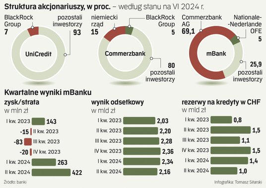 – Jeśli nowy podmiot, który powstałby po ewentualnym połączeniu UniCreditu i Commerzbanku, miałby słabą pozycję kapitałową, to można się zastanawiać, czy chciałby się dokapitalizować poprzez sprzedaż mBanku – zauważa Andrzej Powierża, analityk BM Citi Handlowy. – Jeśli będzie silny, to po prostu zmieni się właściciel banku należącego do piątki największych kredytodawców w Polsce. A czy to zmieniłoby działalność operacyjną i strategię mBanku? Zobaczymy – zaznacza Powierża.