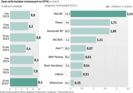 Za to dla Santandera analitycy nie przewidują jakiś szczególnych wydarzeń wpływających negatywnie na wyniki, nawet biorąc pod uwagę, że rezerwy na kredyty CHF mogły wynieść tu 300–350 mln zł (wobec 430 mln zł w III kwartale 2023 r. oraz 1,2 mld zł w II kwartale br.). Za to zdaniem Michała Konarskiego koszty frankowe w Santanderze mogą odbić w końcówce tego roku.