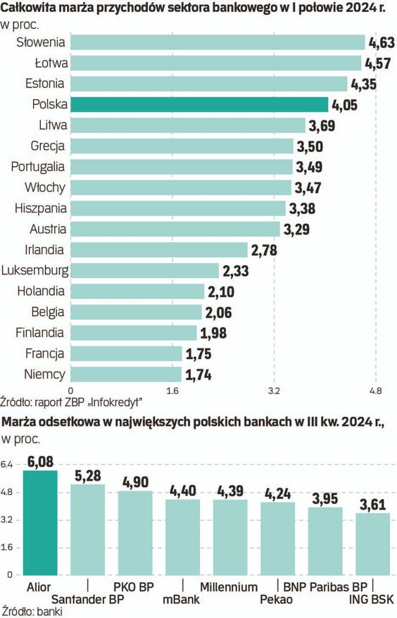W swojej analizie ZBP zaznacza jednocześnie, że polski sektor bankowy charakteryzuje się najwyższą stopą kosztów całkowitych. U nas ten wskaźnik wynosił w pierwszej połowie tego roku 2,95 proc., a w krajach strefy euro kształtował się od 1,22 proc. w Finlandii do 2,6 proc. w Estonii. Przy czym Polska zajmuje tu pierwsze miejsce ze względu na koszty ryzyka prawnego kredytów frankowych. Gdyby nie to, plasowalibyśmy się na średnim poziomie.