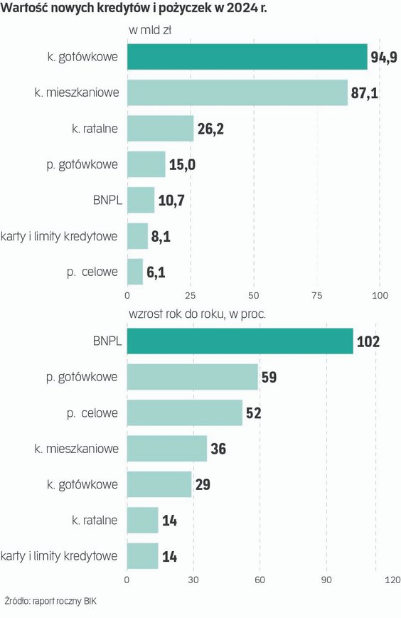 Wartość kredytów i pożyczek zaciągniętych przez gospodarstwa domowe w 2024 r. sięgnęła niemal 250...