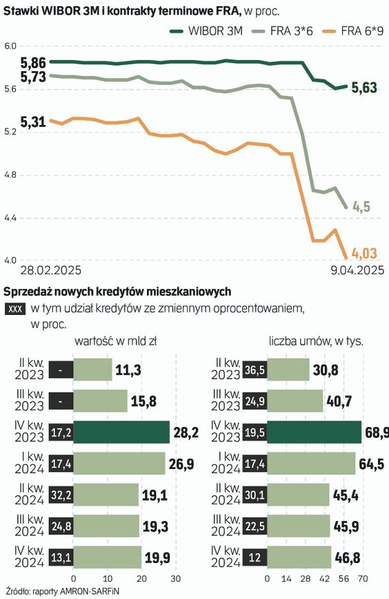 Przypomnijmy, że oprocentowanie zmienne kredytów hipotecznych jest oparte na stawkach WIBOR (a nie bezpośrednio na stopach procentowych NBP). Sam zaś WIBOR określa koszt, po jakim banki w Polsce są skłonne pożyczać sobie nawzajem na rynku międzybankowym. Przy ustalaniu stawek bierze się pod uwagę obecne warunki rynkowe, ale też pewne przewidywania, jak kształtować się one będą za trzy czy za sześć miesięcy. Dlatego WIBOR nazywa się wskaźnikiem wyprzedzającym, patrzącym w przyszłość, a nie tylko na to, co się już wydarzyło. I dlatego też jego stawki reagują na samą zapowiedź obniżek stóp procentowych, nie czekając, aż ta obniżka, co jest możliwe najwcześniej w maju, rzeczywiście się ziści.