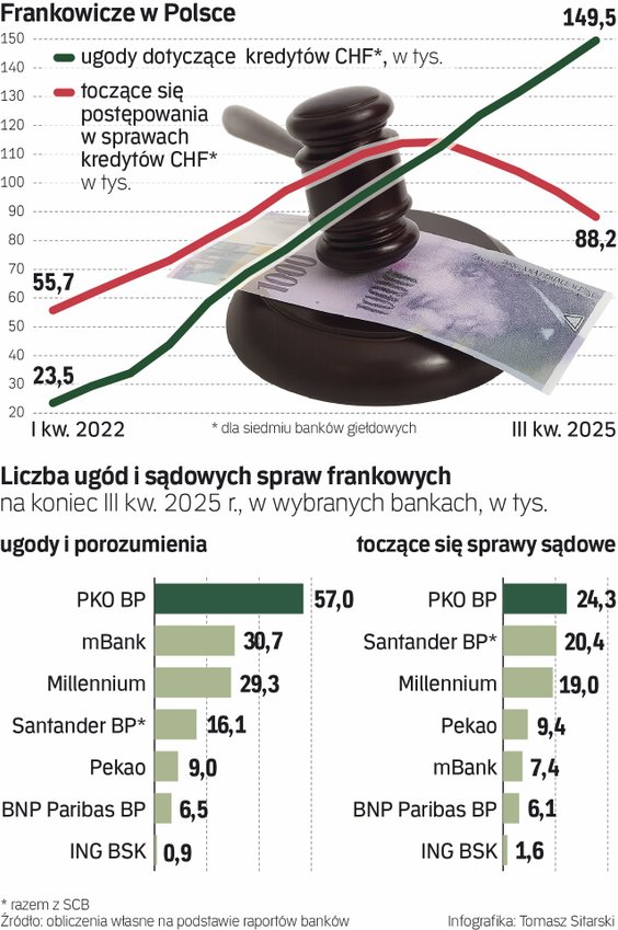 - Jakie najnowsze dane odnośnie liczby ugód i pozwów przedstawiają największe banki?
