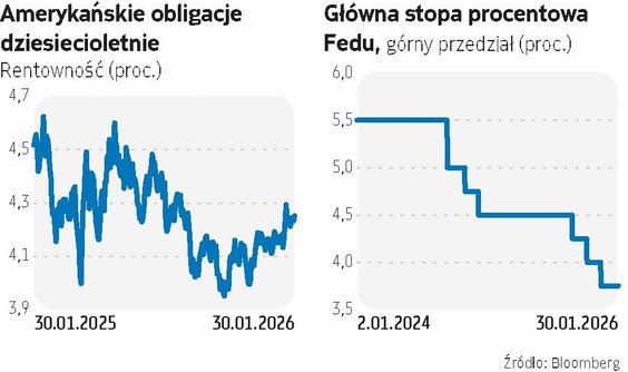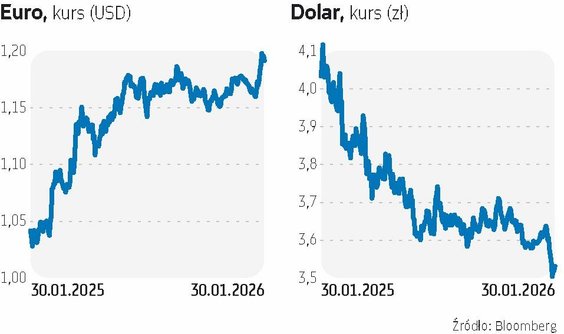 Piątkowa sesja przyniosła umocnienie dolara i zarazem silną przecenę metali szlachetnych. Notowania amerykańskiej waluty skoczyły do 3,53 zł za 1 USD. Mocno traciły za to metale szlachetne. Złoto taniało o 7 proc. (jego cena chwilowo spadła poniżej 5000 dol. za uncję), a srebro zniżkowało nawet o 15 proc. (cena przez pewien czas była poniżej 100 dol. za uncję). W ten sposób rynki reagowały na doniesienia o tym, że prezydent USA Donald Trump wyznaczył Kevina Warsha na nowego szefa Fedu. Dzień wcześniej prezydent spotkał się z nim. Przecieki potwierdziły się koło godziny 13. Trump zamieścił wówczas wpis na swojej platformie społecznościowej Truth Social. „Znam Kevina od bardzo dawna i nie mam wątpliwości, że zapisze się jako jeden z WIELKICH przewodniczących Fed, może nawet najlepszy” – napisał prezydent USA.