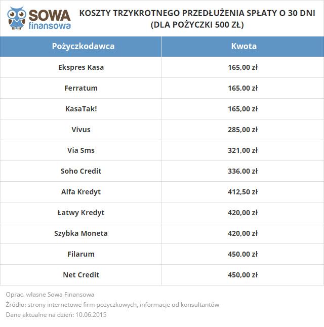 Pożyczkodawcy wiedzą, że klienci nie zawsze będą w stanie zwrócić pożyczkę na czas. Dlatego za dodatkową opłatą pozwalają im na przedłużenie terminu spłaty. Każdą pożyczkę można standardowo przedłużyć o 7, 14 bądź 30 dni. Koszty takiego przedłużenia w każdej firmie są inne - tłumaczy Katarzyna Stania, ekspert od chwilówek online z Sowafinansowa.pl