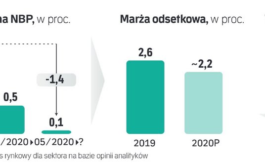• Rentowność sektora banków spółdzielczych jeszcze przed wybuchem pandemii oraz obniżkami stóp procentowych wynosiła 5,5 proc. Należy pamiętać, że banki spółdzielcze są najbardziej narażone na cięcia stóp. W ich przypadku wynik odsetkowy to aż 80 proc. wszystkich przychodów (raport KNF o bankowości spółdzielczej) w porównaniu z 72,3 proc. dla banków komercyjnych w 2019 r.