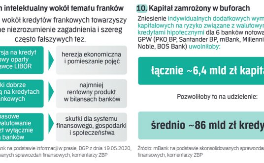 Przez pięć lat od nagłego skoku kursu franka szwajcarskiego względem złotego niezliczone inicjatywy polityczne i wyjątkowo penalizujące banki działania nadzorców doprowadziły jedynie do istotnego pogorszenia rentowności sektora. W dodatkowych buforach kapitałowych zamrożone pozostają kwoty, które po uwolnieniu pozwoliłyby na zwiększenie kredytów dla gospodarki o około 80 mld zł (grafiki 9 i 10).