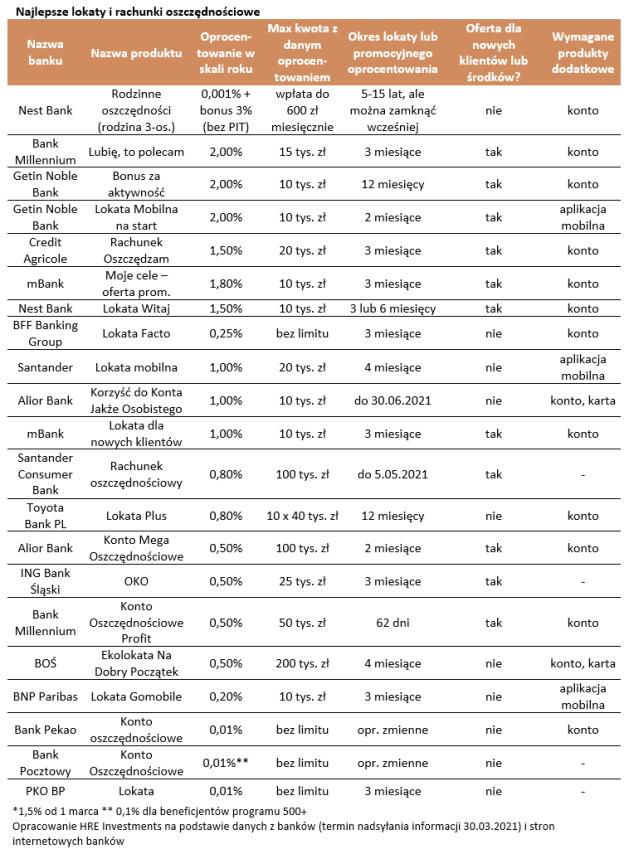 - Produkty z czołówki naszego zestawienia są limitowane. Mogą być zarezerwowane dla nowych klientów lub ich nowych oszczędności. Promocyjne oprocentowanie zazwyczaj obowiązuje przez nie dłużej niż kilka miesięcy, a i kwota, którą możemy ulokować nie powala na kolana. Przeważnie jest to nie więcej niż 10-20 tys. zł. I gdyby tego było mało, to nierzadko, aby założyć promocyjny depozyt, trzeba też skorzystać z innych produktów banku. W sumie promocyjne depozyty pozwalają nam zarobić zazwyczaj od 50 do 150 złotych odsetek więcej, niż gdybyśmy korzystali ze statystycznej rocznej lokaty – mówi Bartosz Turek, główny analityk HRE Investments.