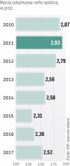 Słabość marży odsetkowej w I kwartale jest pozorna. Wpłynęły na nią dwa główne czynniki: mniejsza liczba dni odsetkowych oraz obowiązujące od początku tego roku mniejsze oprocentowanie rezerwy obowiązkowej banków w NBP, które skutkować będzie obniżeniem wyniku netto sektora o 275 mln zł w całym roku. Poza tym niektóre banki, jak ING Bank Śląski, Millennium czy Idea Bank, przeprowadziły promocje, oferując wyższe niż wcześniej oprocentowanie depozytów, aby przyciągnąć nowych klientów i ich oszczędności.