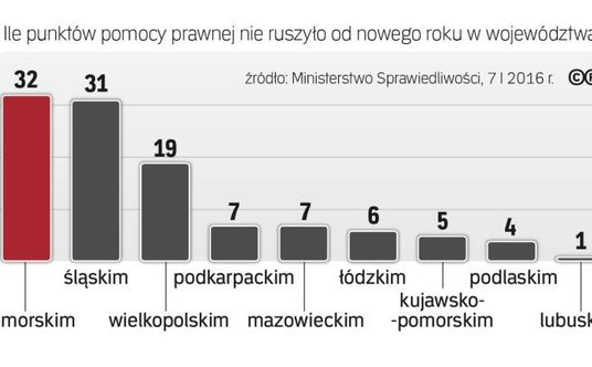 Jak to możliwe? Za organizację punktów bezpłatnego poradnictwa odpowiedzialne są powiaty. Państwo ma je w tym wspierać finansowo. W tym roku powinny otrzymać w sumie przeszło 94 mln zł dotacji: 97 proc. z tej kwoty przeznaczyć na wynagrodzenie prawników, a 3 proc. na koszty organizacyjne związane z prowadzeniem punktów. Okazuje się jednak, że z uruchomieniem dotacji są problemy.