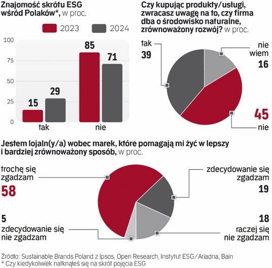 Już prawie trzech na dziesięciu Polaków zetknęło się ze skrótem ESG. To prawie dwa razy więcej niż przed rokiem. Niemal czterech na dziesięciu zapewnia też, że kupując produkty lub usługi zwracają uwagę na to, czy dana firma dba o środowisko naturalne, ład korporacyjny, zrównoważony rozwój, czyli działa zgodnie z zasadami określanymi skrótem ESG. Ta grupa świadomych konsumentów jest teraz o kilka punktów procentowych większa niż rok wcześniej – wynika z niedawnego sondażu ogólnopolskiego panelu badawczego Ariadna na zlecenie Instytutu ESG.