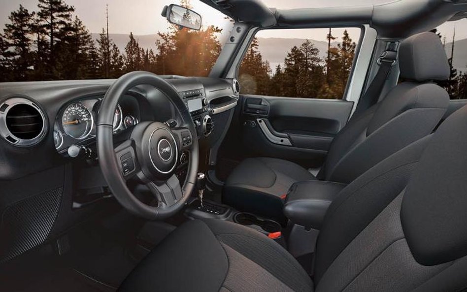 Zresztą, czy ja wiem? Czy to znowu takie poświęcenie, że na bitej drodze krótki Jeep Wrangler, obuty w opony 255/70 R18, zachowuje się jak dostojny okręt, reagując na ruchy kierownicy tak jak statek na koło sterowe, z wyraźnym opóźnieniem i brakiem precyzji? Że po wciśnięciu gazu do podłogi wydawałoby się potężny, bo mający wszak 284 KM 3,6-litrowy silnik V6 sprzęgnięty z pięciobiegowym automatem, rozpędza samochód w podobny sposób, jak (i tu znów morskie analogie) okrętowy diesel porywa do sprintu kuter torpedowy? Najpierw dzieje się niewiele, a dopiero potem maszyna rzuca się przed siebie. Że projektanci nie słyszeli o pojęciu ergonomii, przespali na fizyce lekcje o współczynniku Cx a kwestie ograniczania zużycia paliwa w ogóle nie przeszły im przez głowę?