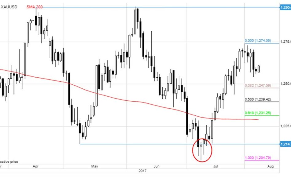 Rynek złota wspiera chęć dywersyfikacji i zabezpieczenia się przez inwestorów przed potencjalną korektą na rynku akcji, wydarzeniami związanymi z Koreą Północną, niepewnością wokół Trumpa oraz potencjalnymi nowymi sygnałami z Fedu podczas zaplanowanej na 24-26 sierpnia corocznej konferencji w Jackson Hole.