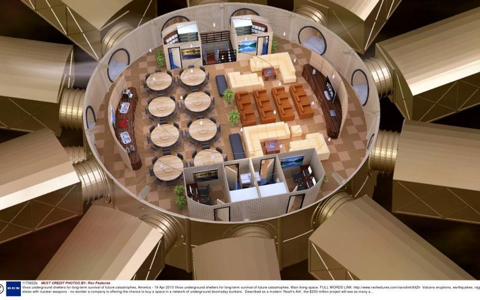 Majętniejsza część ludzkości ma zatem możliwość przetrwać w apartamentach o wysokości ok. 4 metrów (zapewne by uniknąć narastającej z czasem klaustrofobii), urządzonych w klasycznym stylu: skórzanymi sofami i fotelami, miękkimi dywanami, pnącymi się ku sufitom paprociami, legowiskami dla zwierzątek, sejfem na broń, wielkoformatowymi plazmami (tylko czy po zagładzie będzie nadawała jeszcze jakaś stacja?) i wielkimi naściennymi fotografiami z widokami Paryża. Sypialnie urządzone w stylu hotelów Ritz Carlton przeznaczone są dla czterech lub sześciu osób. „Przydomowa" spiżarnia zawiera zapasy mrożonych i konserwowych produktów, z których można przygotować ok. 60 rodzajów potraw. Dieta nie będzie więc nazbyt monotonna.