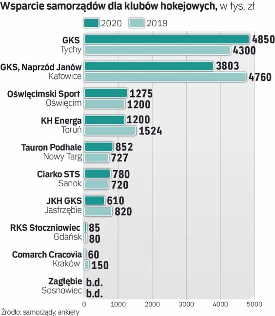 Inne samorządy były hojniejsze. – Można byłoby powiedzieć, że kluby sportowe w ogóle nie powinny sięgać po miejskie pieniądze. Wszyscy jednak wiemy, że tak nie jest i jeszcze długo nie będzie. Są to bardzo często dodatkowe, niemałe środki zwiększające budżet, które często decydują o sportowej pozycji klubu – mówi Michał Świącik, prezes Włókniarza Częstochowa. Klub ten od samorządu w 2020 r. otrzymał 2,1 mln zł. Rok wcześniej było to jednak 3,6 mln zł.