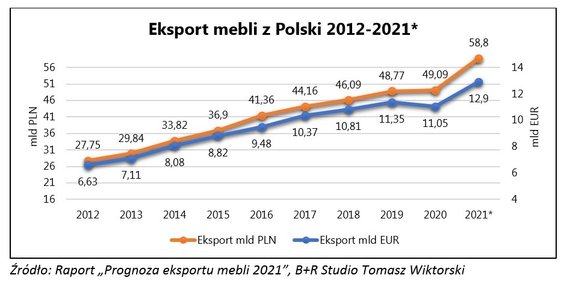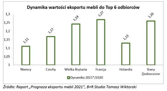 Analitycy pracowni B+R Studio TW, choć podkreślają, że popyt na polskie meble konsekwentnie rośnie to zmęczenie skutkami Covid -19 spowodowało znacznie ostrożniejsze prognozy i oczekiwania rynku. Początkowo zakładano, iż sprzedaż polskich mebli na rynki zagraniczne zwiększy się najwyżej o ok. 8 procent. Szczegółowe badania i analizy pozwalają na większy optymizm.
