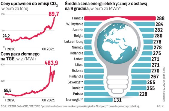 Ceny surowców energetycznych poszybowały, sam gaz ponownie przekroczył barierę 1000 dol. za 1000 m sześc. Niedobory pogłębia najniższa od kilku lat temperatura o tej porze roku. Jeszcze w październiku analitycy przestrzegali, że jeśli zima przyjdzie wcześniej, ceny ponownie wzrosną. W Finlandii na początku grudnia za prąd trzeba było płacić 1000 euro za MWh. W Polsce ceny były w przedziale 250–300 euro.