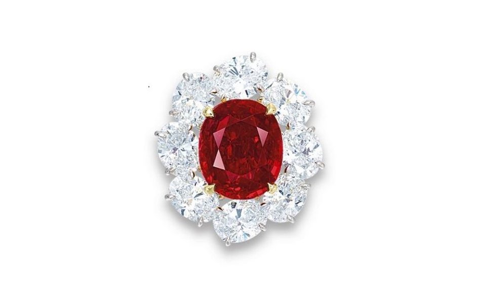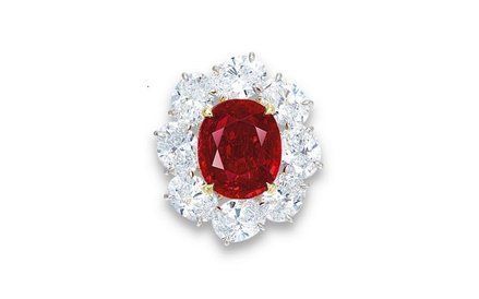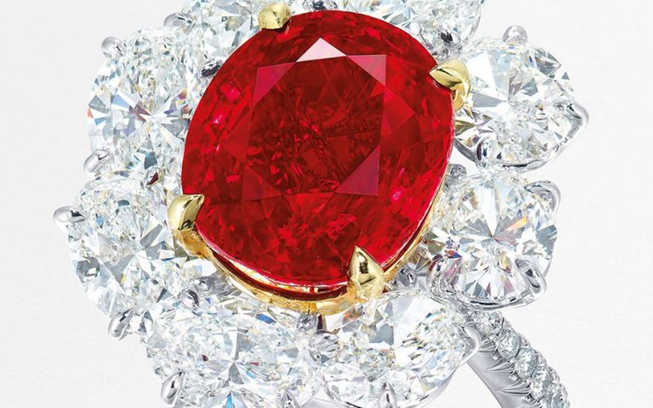 Rubin o barwie gołębiej krwi wśród klejnotów na aukcji w Hongkongu