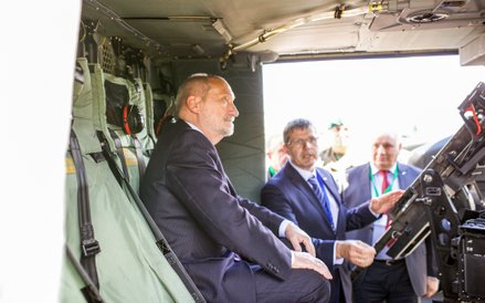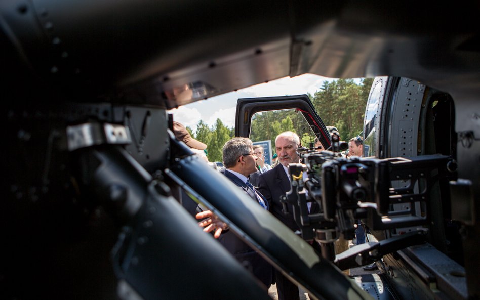 Wizytujący goście - na czele z Ministrem Obrony Narodowej Antonim Macierewiczem - mieli okazję obejrzeć śmigłowiec wyposażony w najnowszej generacji pociski, rakiety, działa i celowniki.