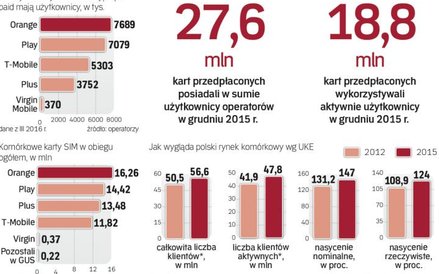 Niemal połowa z około 28 mln kart przedpłaconych telefonii komórkowej w 2015 r. roku nie była w ogóle wykorzystywana – wynika z danych UKE i szacunków „Rzeczpospolitej".