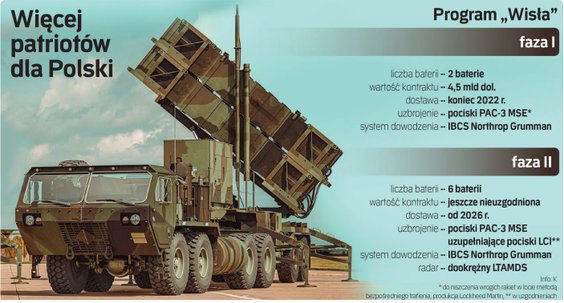 To ważna i oczekiwana wiadomość, bo Polska we wrześniu 2018 roku zamówiła do swej tarczy powietrznej średniego zasięgu Wisła dwie baterie (16 wyrzutni) patriotów, w istniejącej i eksploatowanej wówczas przez US Army konfiguracji uzupełnionej jedynie na specjalne życzenie Warszawy o nowoczesny i rozwijany dopiero w Ameryce system dowodzenia IBCS (prod. Northrop Grumman).