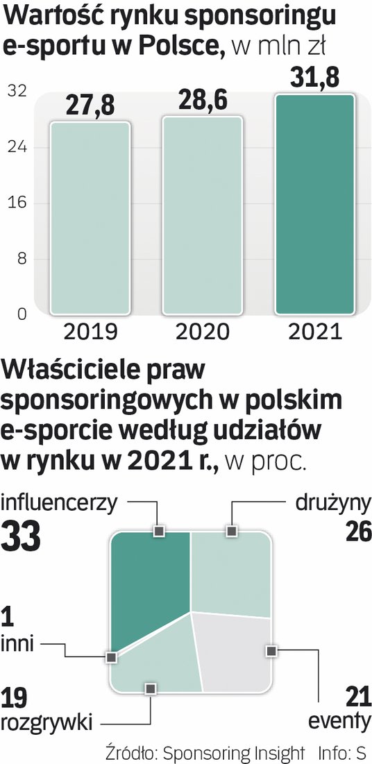 Wartość krajowego rynku sponsoringu e-sportu wyniosła w ubiegłym roku 31,8 mln zł – wynika z raportu firmy Sponsoring Insight. To o 11,2 proc. więcej niż zanotowano w 2020 r. W tym roku zwyżka może być podobna. – Polski rynek wyróżnia się dynamiką rozwoju – czołowe krajowe rozgrywki, takie jak Polska Liga Esportowa oraz Ekstraklasa Games skalą oraz jakością nie odbiegają od globalnej czołówki, a Polska coraz częściej wybierana jest jako hub produkcyjny dla międzynarodowych rozgrywek. Związane jest to m.in. z istotnymi inwestycjami w studia produkcyjne zlokalizowane m.in. w Warszawie oraz w Katowicach – mówi Michał Gradzik, partner zarządzający Sponsoring Insight.