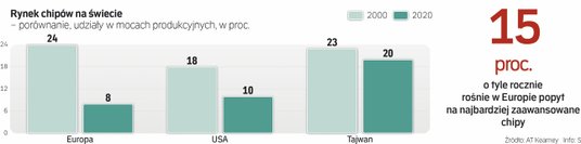 Z pewnością w zakresie budowy alternatywy dla azjatyckich układów scalonych sporo się dzieje. Wystarczy wspomnieć o budowie gigafabryki Intela w Arizonie (w stanie tym swoje instalacje wybuduje też tajwański potentat TSMC), która ma być uruchomiona w 2024 r., czy wyborze przez ten koncern Niemiec (wygrały z Polską walkę o lokalizację) na miejsce stworzenia europejskiego zakładu produkcji układów scalonych. Poza tym Intel rozbudowuje, kosztem 12 mld euro, swoje moce wytwórcze w Irlandii, do tego dochodzi budowa centrum badawczo-rozwojowego we Francji czy powiększenie laboratoriów w Gdańsku. W sumie Intel w ciągu najbliższej dekady zainwestuje 80 mld euro w rozszerzenie działalności w UE. – Napięcie w Azji, którego jesteśmy świadkami, to nie jest coś nowego, wywołanego przylotem na Tajwan spikerki Izby Reprezentantów Nancy Pelosi. Ta presja Chin trwa od lat. I od lat światowe rządy zdają sobie sprawę zarówno z uzależnienia od chipów produkowanych w Azji, jak i związanego z tym narażenia gospodarek na zaburzenia w dostawach półprzewodników. Europa i Stany Zjednoczone przespały wiele lat – komentuje Dawid Krzysiak, dyrektor warszawskiego biura Kearney.