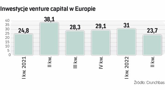 Finansowanie europejskich start-upów osiągnęło w okresie kwiecień–czerwiec pułap 23,7 mld dol. – wynika z najnowszych danych Crunchbase. Dla porównania, rok wcześniej innowacyjne spółki otrzymały od inwestorów rekordowe 38 mld dol. Oznacza to, że strumień pieniędzy dla tego typu podmiotów na naszym kontynencie skurczył się w ciągu roku aż o 38 proc.