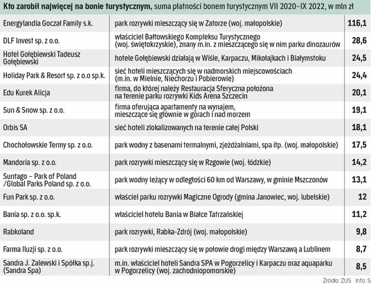 Wiceprezes POT zwraca uwagę, że fakt, iż w zestawieniu ZUS widać głównie duże podmioty hotelarskie, wynika m.in. ze skali ich działalności. Nie można ich porównywać z gospodarstwami agroturystycznymi, prywatnymi kwaterami czy lokalnymi pensjonatami. A one również są wśród beneficjentów programu. – Gdybyśmy tę grupę potraktowali łącznie, wtedy dałoby się zauważyć, że kwoty, które do niej spłynęły, są porównywalne z tymi, które trafiły do największych „graczy” – mówi.