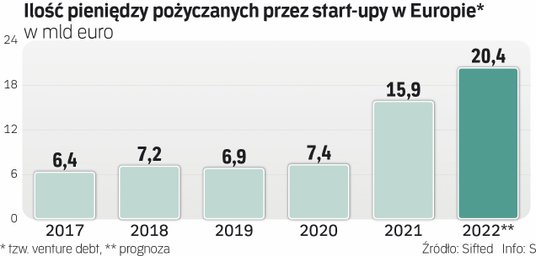 Widoczna od początku roku mniejsza aktywność funduszy venture capital, a także brak dostępu do taniego kapitału, który w poprzednich latach rozkręcił rynek młodych technologicznych spółek, bije w start-upy. Aby przetrwać i kontynuować rozwój projektów, te zaczynają pożyczać pieniądze – podają eksperci Sifted. Z ich prognoz wynika, że 2022 r. będzie pod tym względem rekordowy. W Europie spółki tego typu zadłużą się na ok. 20,5 mld euro, a to prawie trzy razy więcej niż w 2020 r. Jak podaje z kolei branżowy serwis Pitchbook, tylko w ciągu pół roku ilość pożyczanych przez start-upy pieniędzy w USA wzrosła o 7,5 proc., podczas gdy finansowanie funduszy VC w tym czasie stopniało o 8 proc. Niedawno fundusz Mercury, który koncentruje się na wspieraniu spółek na wczesnym etapie rozwoju, podał, że zamierza w ramach tzw. venture debt zaoferować jeszcze w br. na rynku 200 mln dol. Ten rodzaj finansowania dotychczas był wykorzystywany w branży niszowo. W kolejnych dwóch latach Mercury planuje jednak pożyczyć firmom technologicznym 1 mld dol. Fundusz Blackstone przewiduje jednak, że zadłużenie wysokiego ryzyka nabierze w ciągu najbliższych kilku lat znacznie większego znaczenia. Jak donosi Bloomberg, w ciągu najbliższych lat Blackstone spodziewa się pożyczyć 2 mld dol.spółkom w fazie rozwoju.