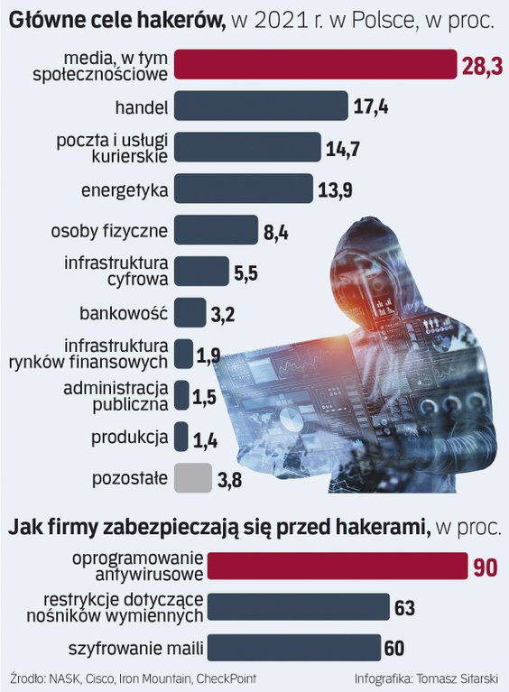 77 proc. polskich firm odnotowało w 2021 r. atak typu ransomware, czyli polegający na szyfrowaniu danych i żądaniu za nie okupu. Rok do roku odsetek takich ataków wzrósł blisko pięciokrotnie. Złośliwe oprogramowanie jest dziś uznawane za największe cyberzagrożenie dla biznesu – wynika z najnowszego badania opracowanego przez CogniClick na zlecenie Iron Mountain.