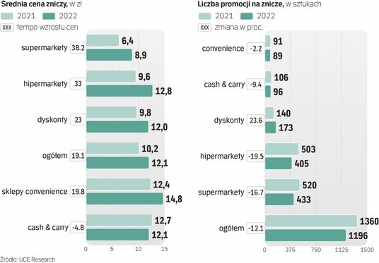 Jednocześnie w niektórych typach sklepów ceny skoczyły niemal 40 proc., choćby w supermarketach. W ujęciu rocznym spadły jedynie nieznacznie w placówkach typu cash & carry, ale należą tam i tak do najwyższych na rynku.